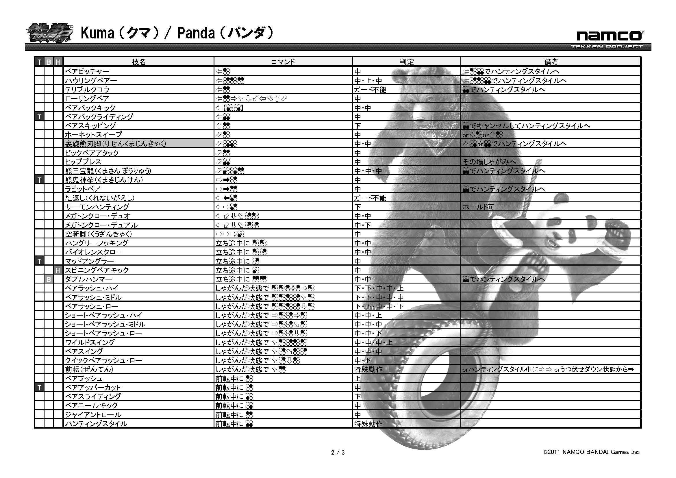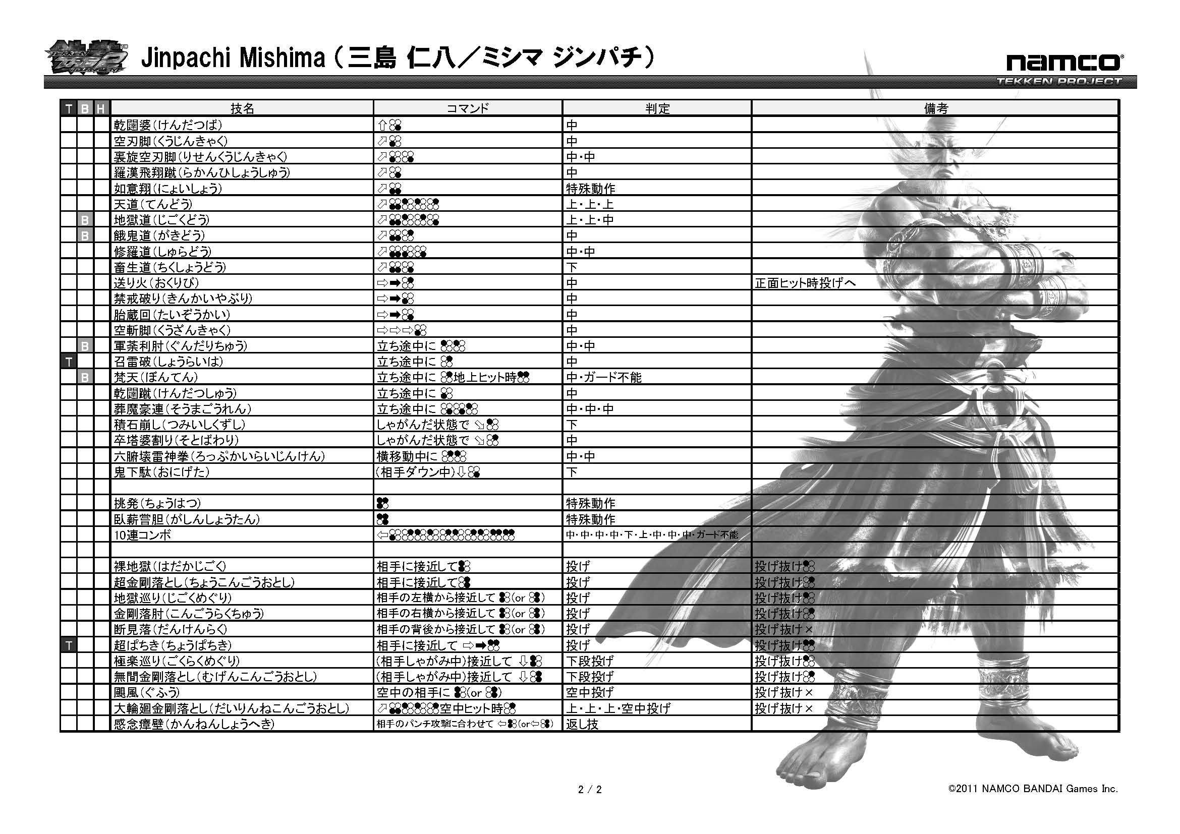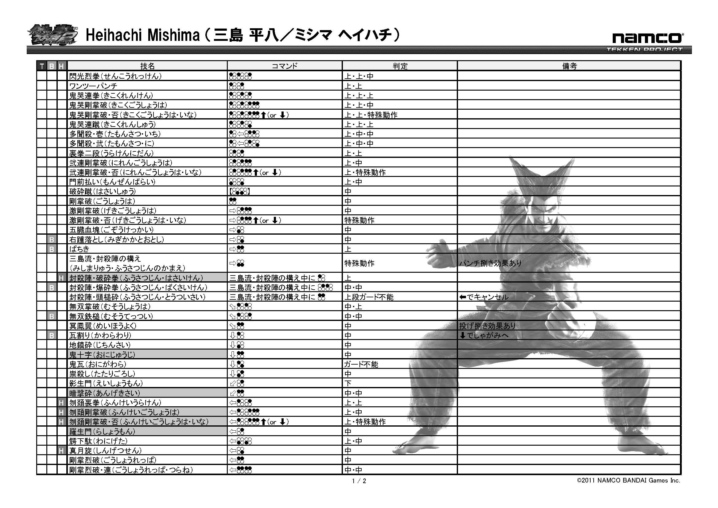 철권 태그 토너먼트2 기술표 : https://www.tekken-official.jp/tag2ac/characters.html