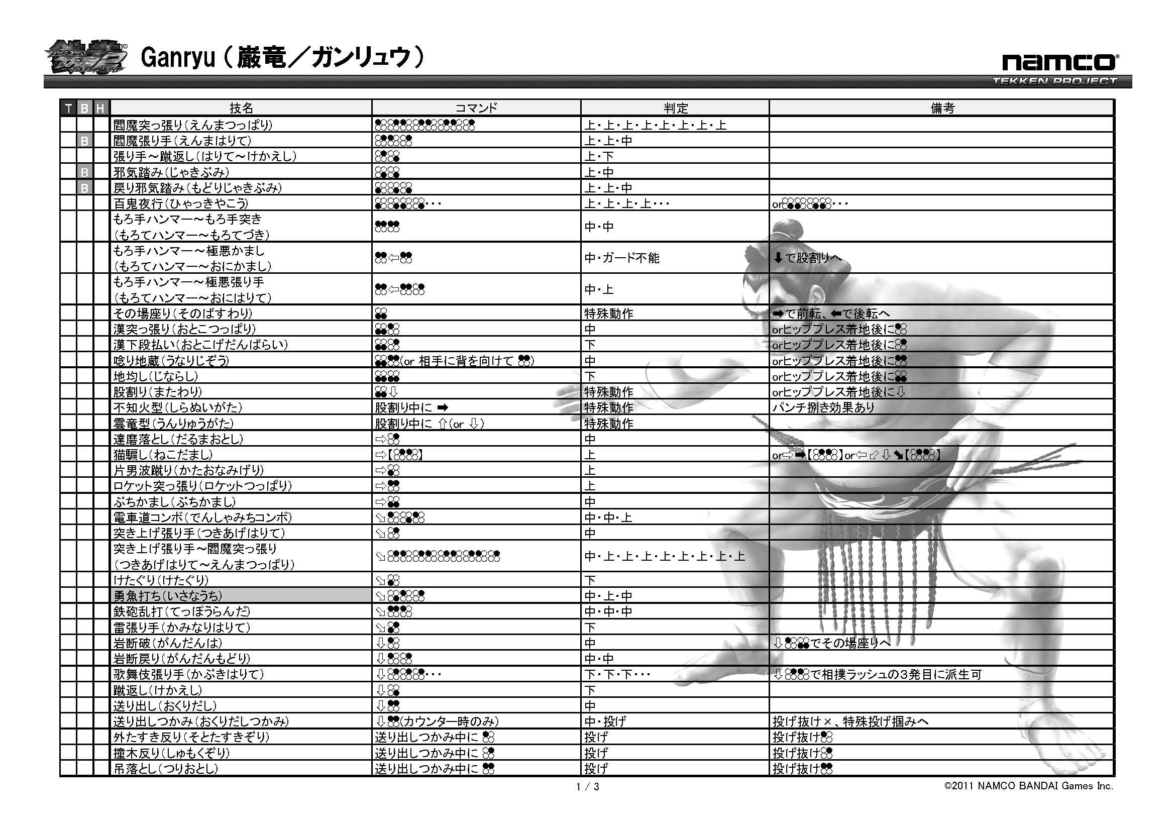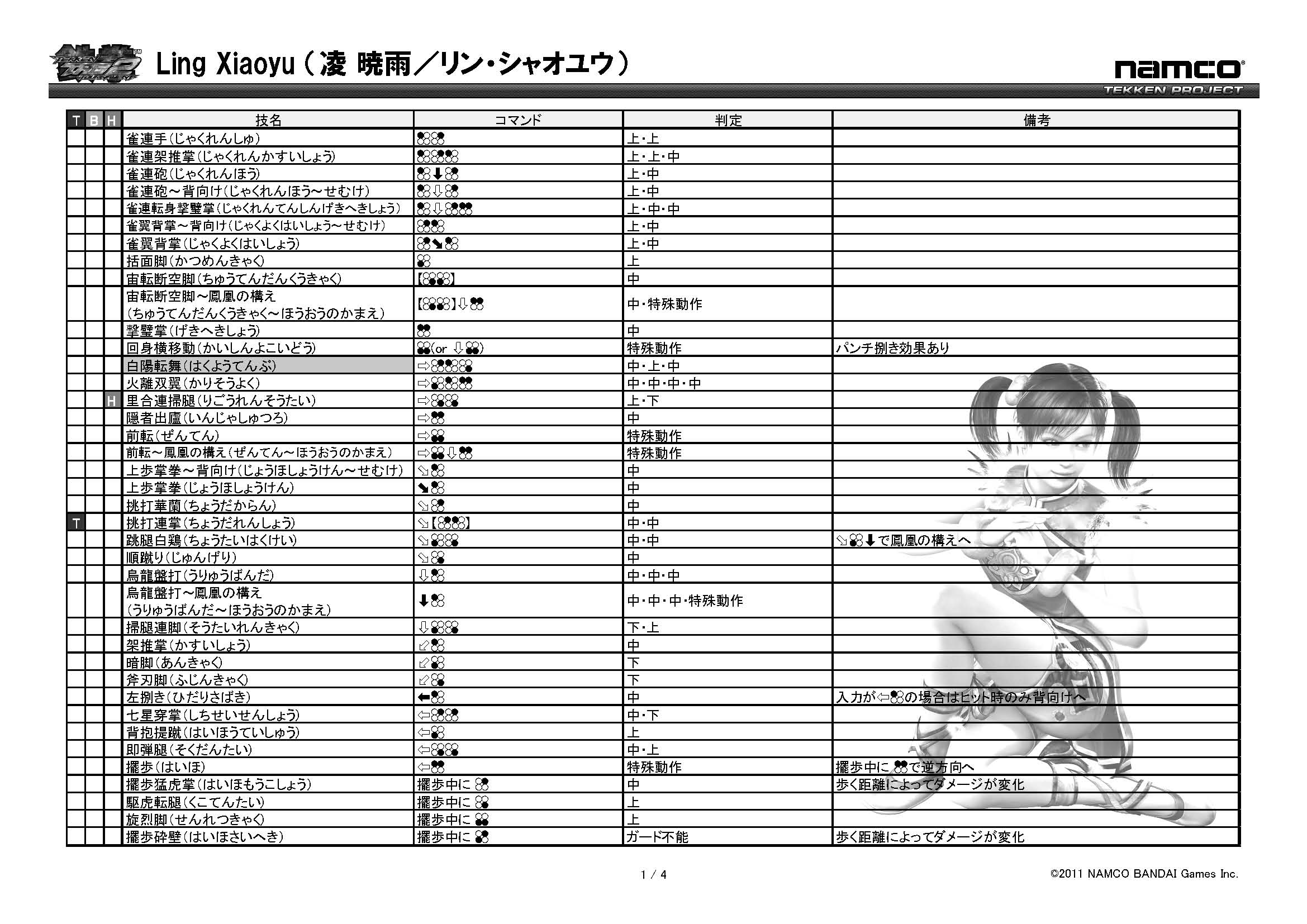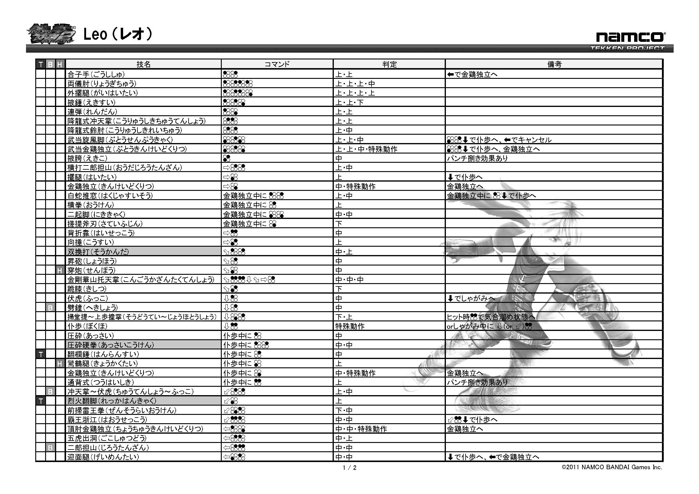 철권 태그 토너먼트2 기술표 : https://www.tekken-official.jp/tag2ac/characters.html