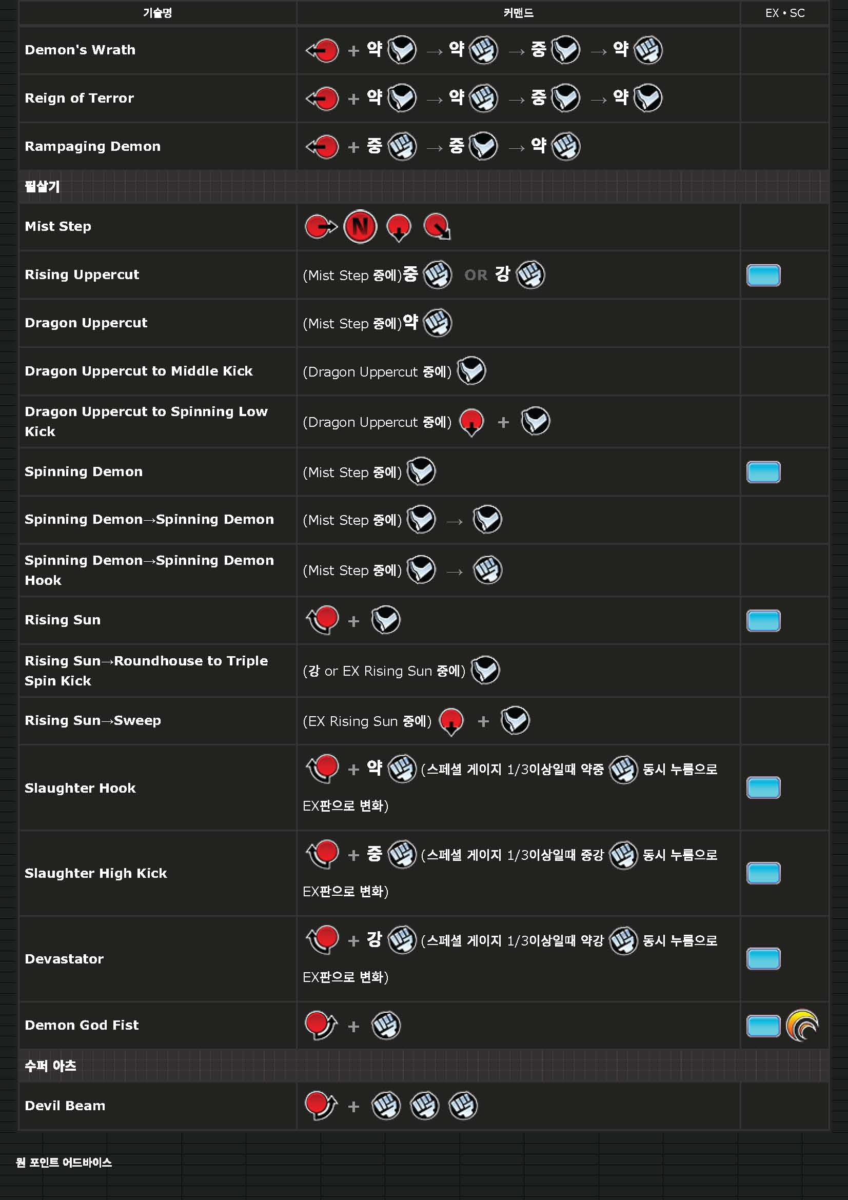 스트리트 파이터 X 철권 기술표 : http://game.capcom.com/manual/sfxtk/ko/page-41.html