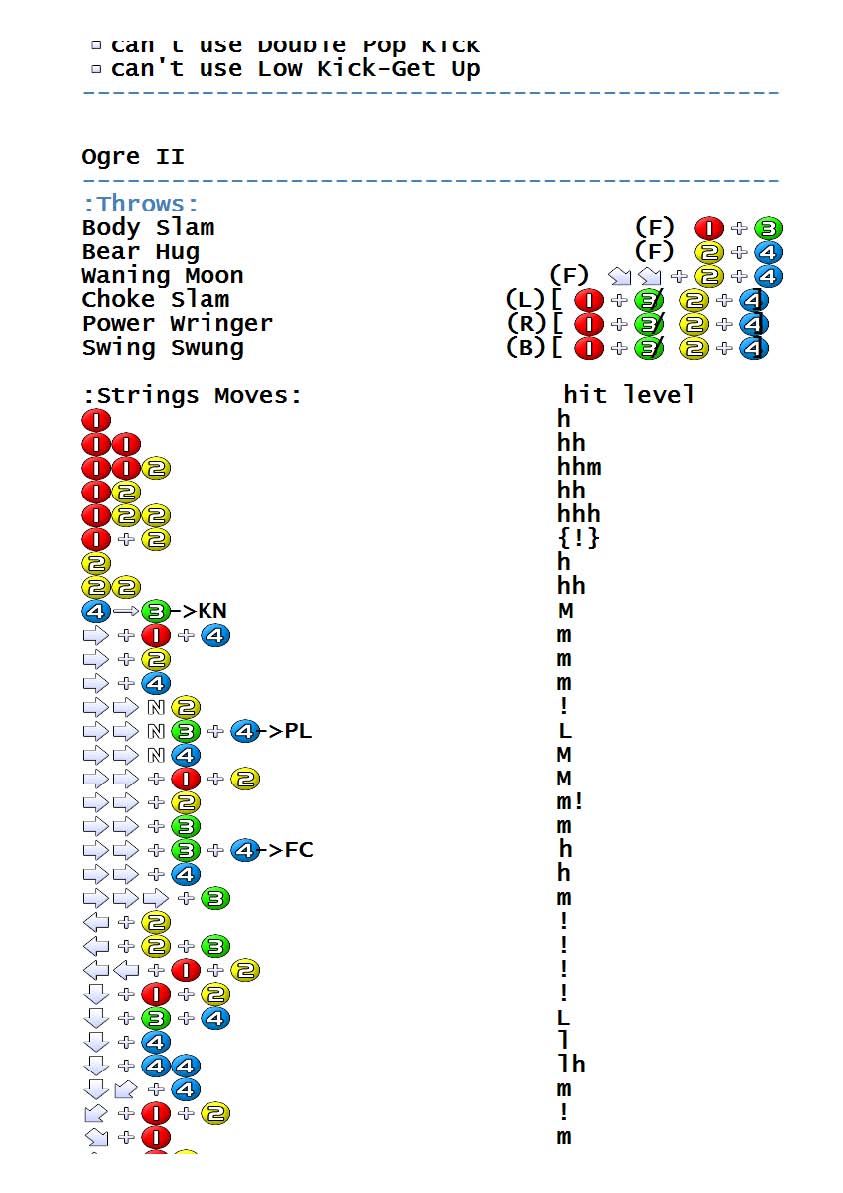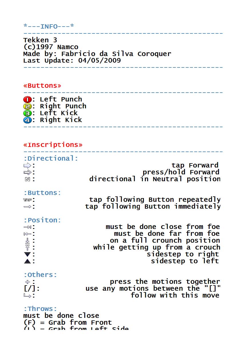 Tekken 3 - Arcade - Commands/Moves - gamesdatabase.org