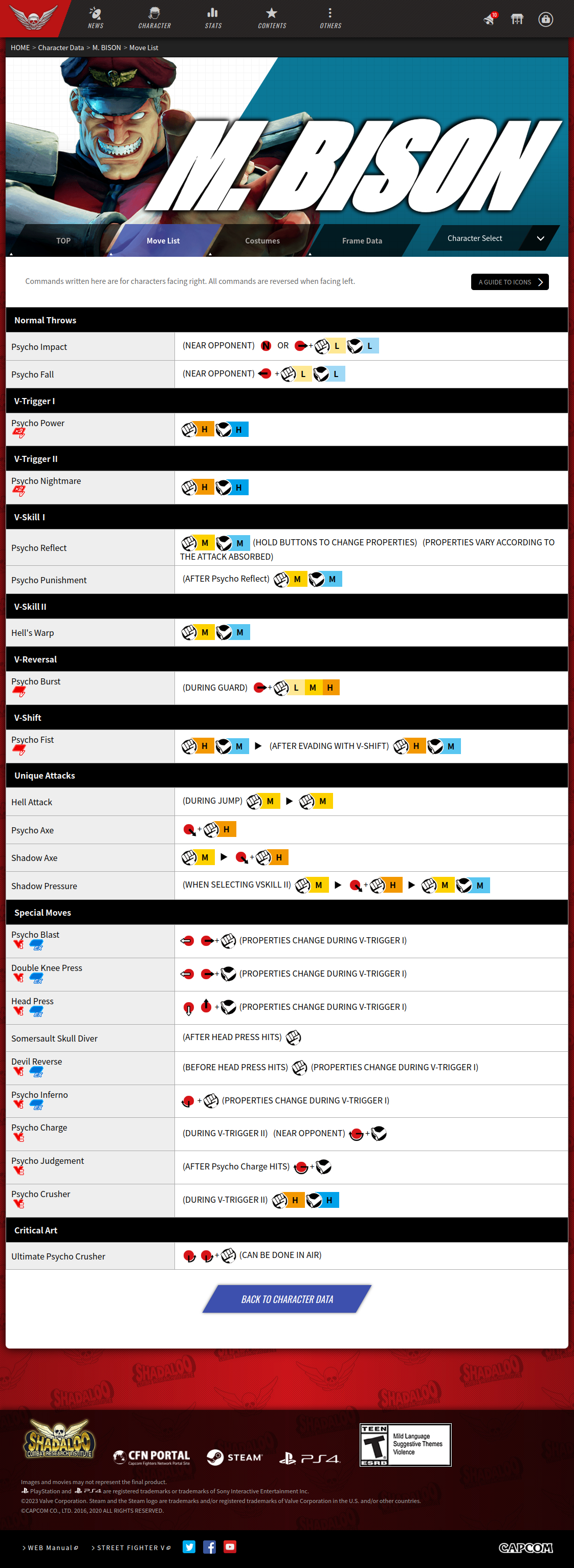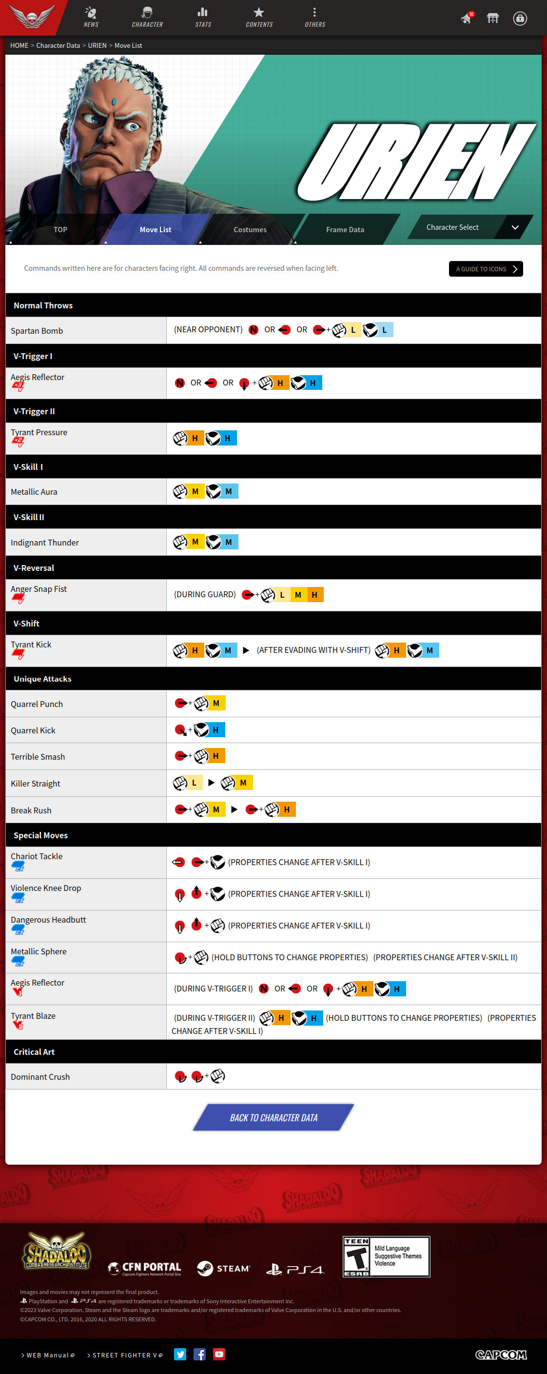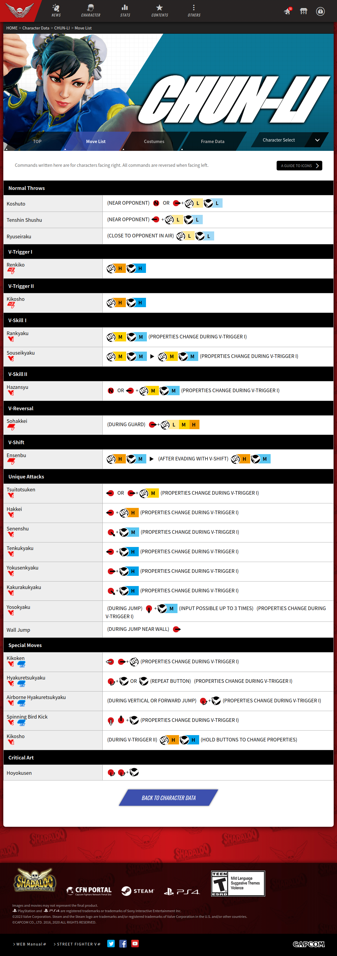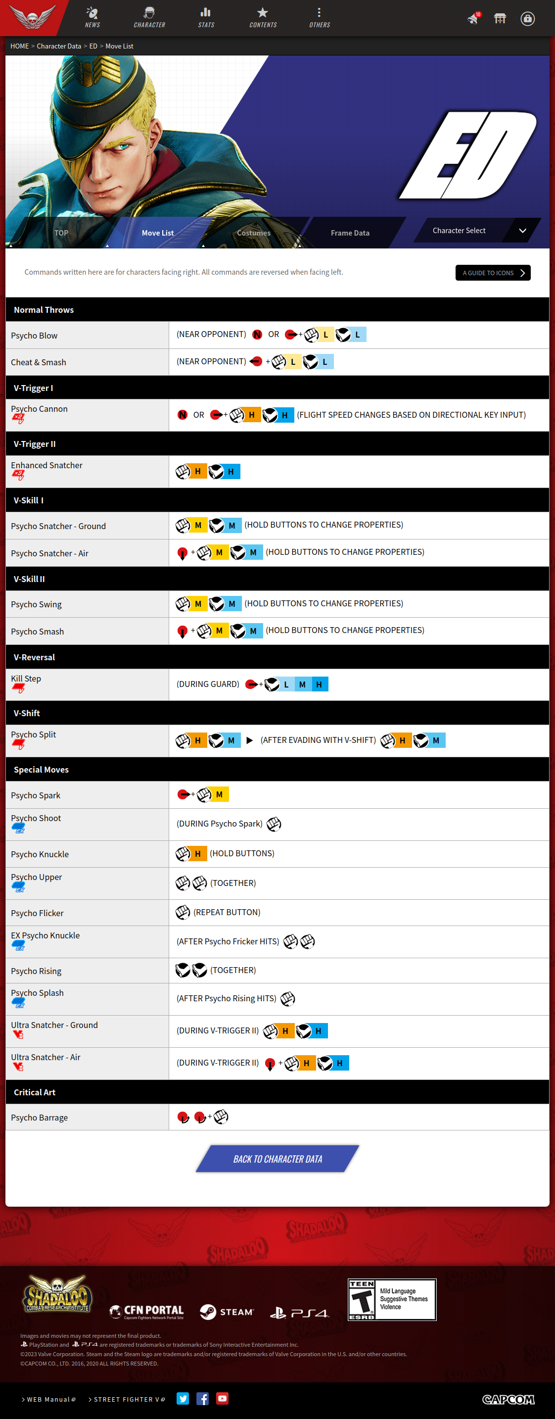 스트리트 파이터 5 챔피언 에디션 기술표 : https://game.capcom.com/cfn/sfv/character