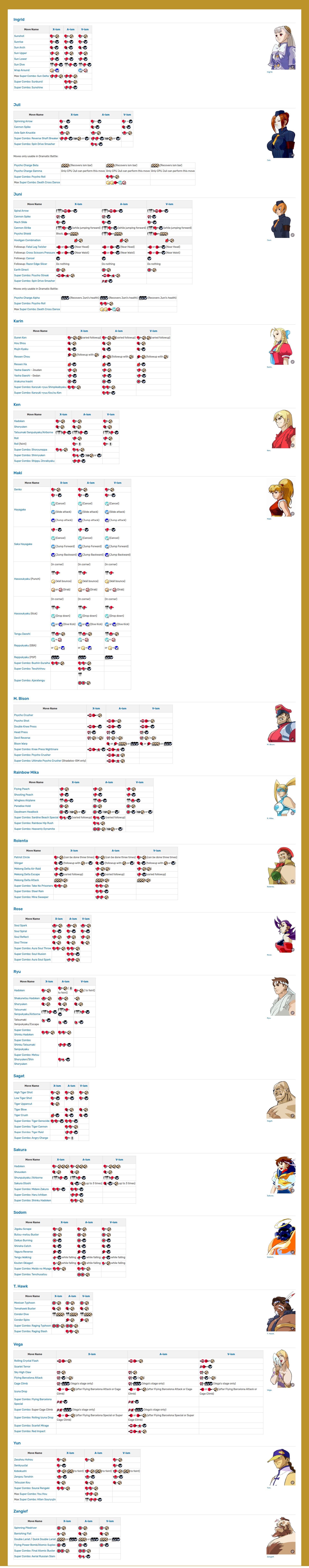 스트리트 파이터 알파 3 I-Z 기술표 : https://streetfighter.fandom.com/wiki/List_of_moves_in_Street_Fighter_Alpha_3_I-Z