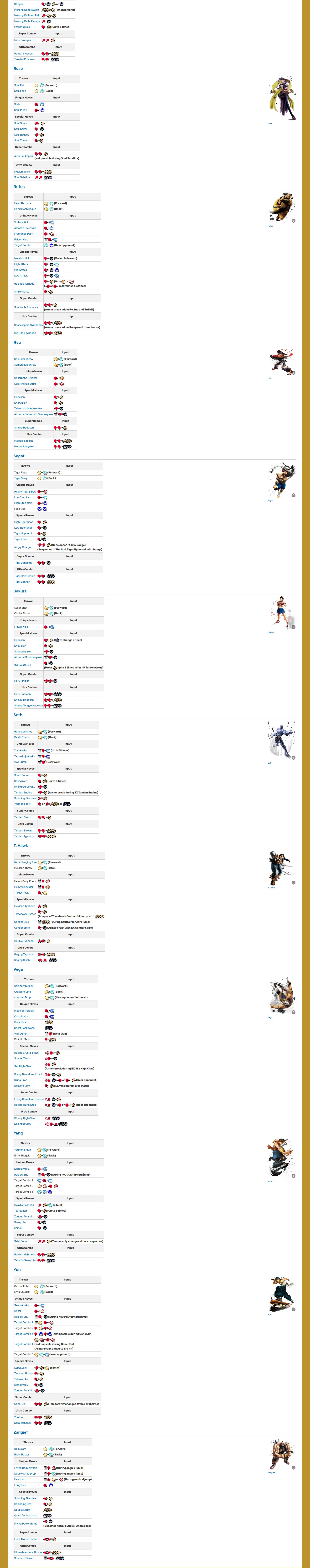 울트라 스트리트 파이터 4 기술표 : https://streetfighter.fandom.com/wiki/List_of_moves_in_Ultra_Street_Fighter_IV