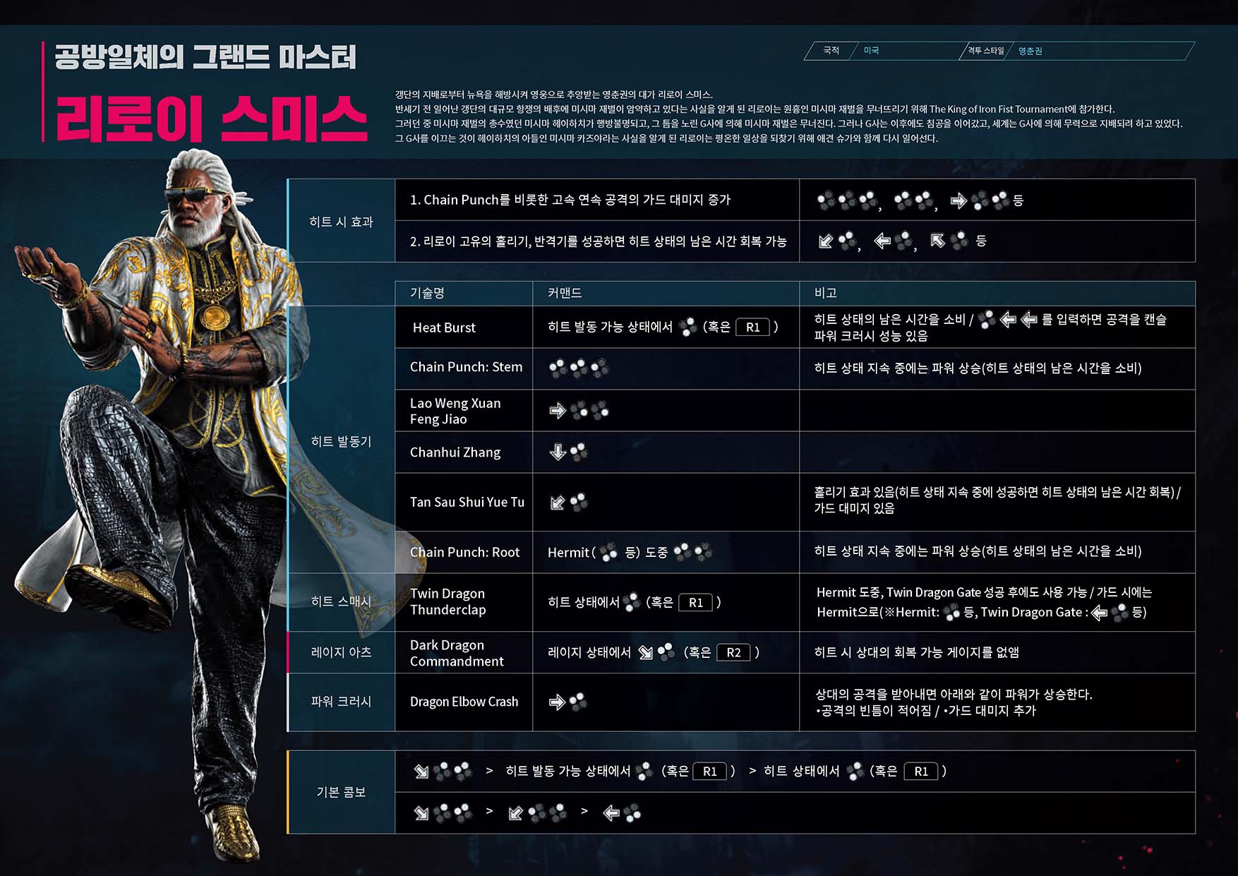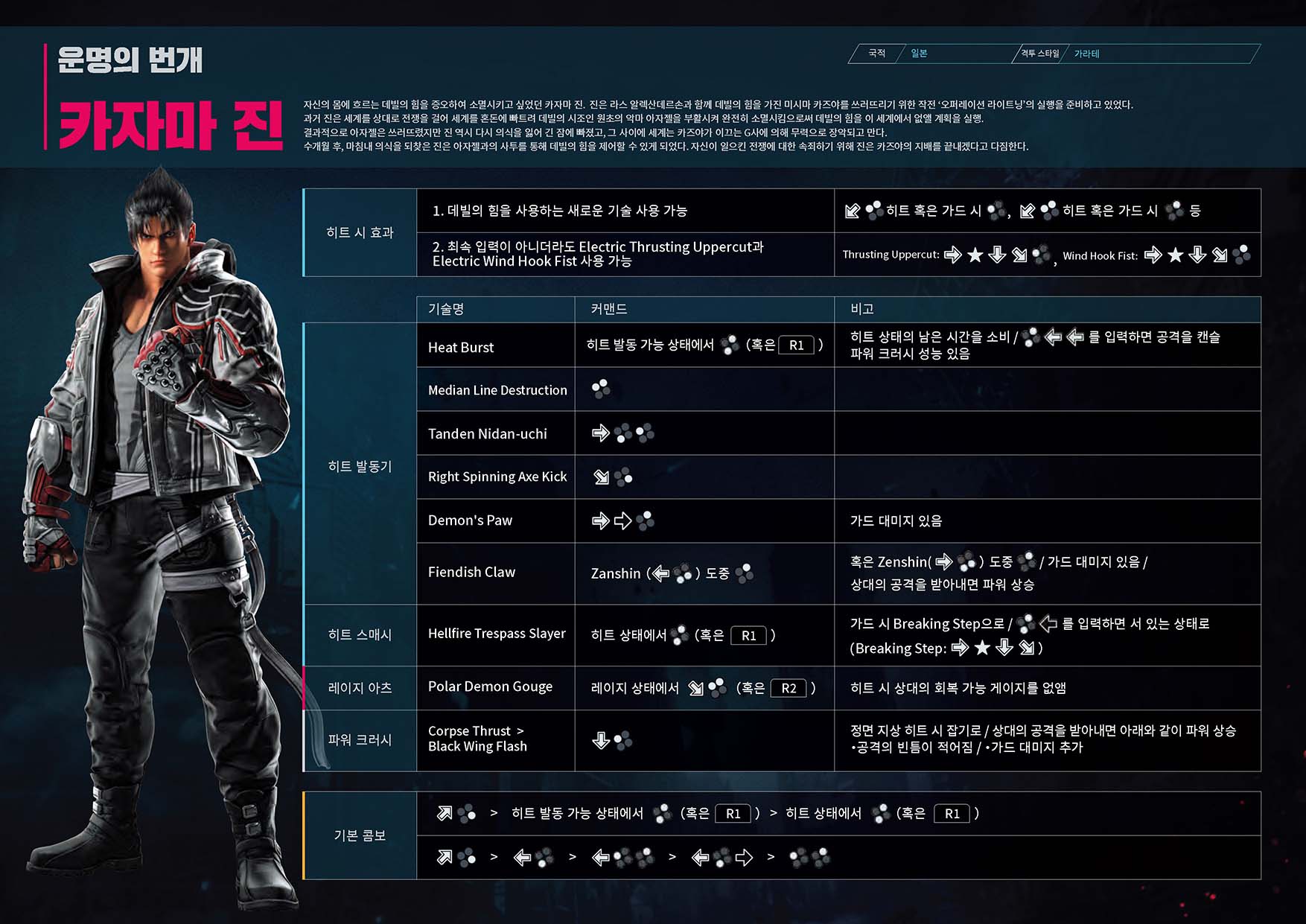 철권 8 기술표 : https://tk8.tekken-official.jp/kr/#character