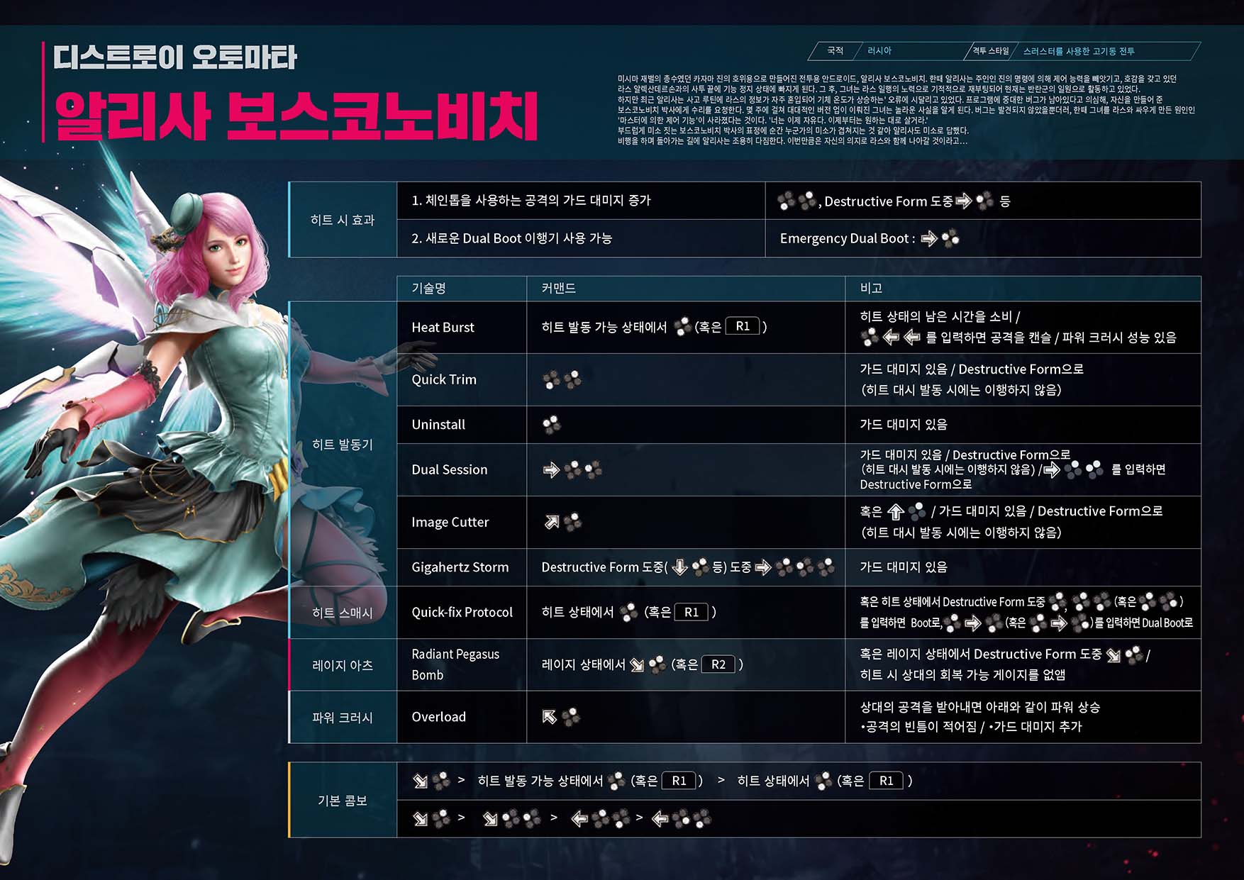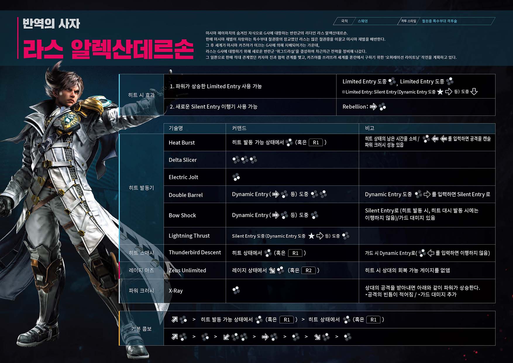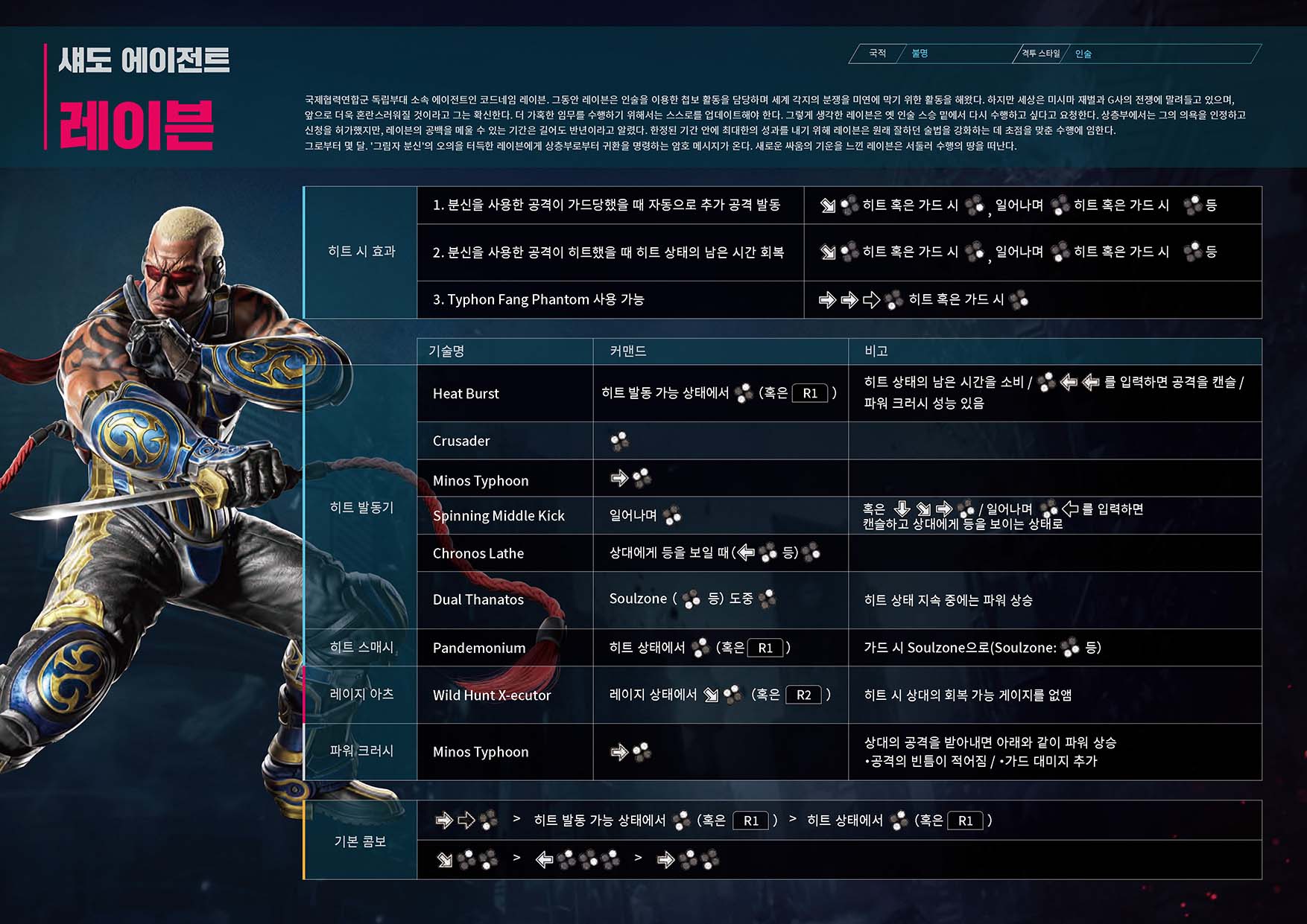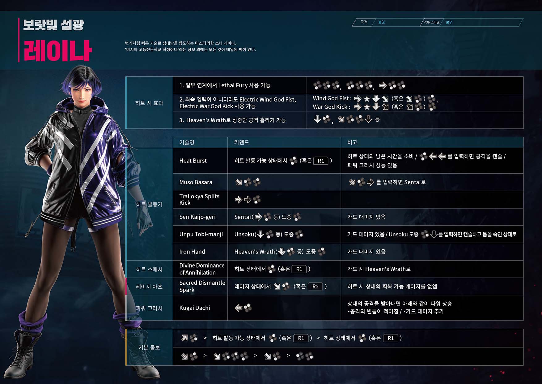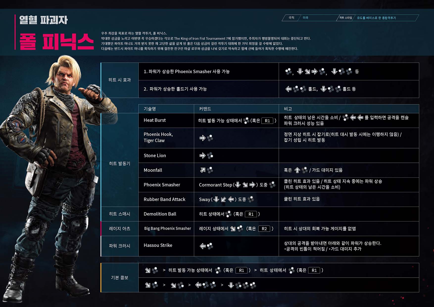 Tekken Wiki 철권 8 기술표 : https://tekken.fandom.com/wiki/Category:Tekken_8_Moves_Lists